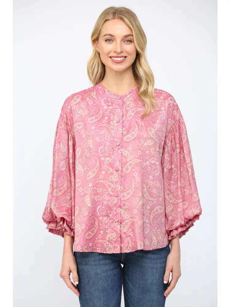 Paisley Print Voluminous Bubble Slv Blouse