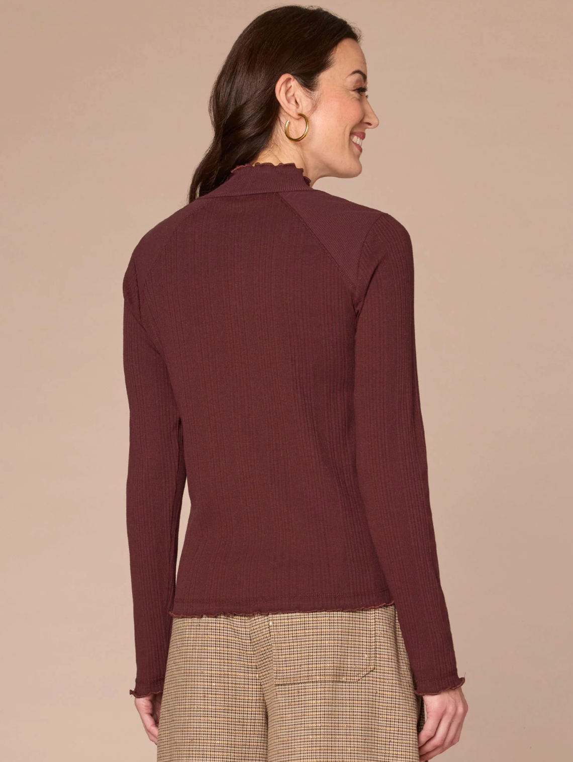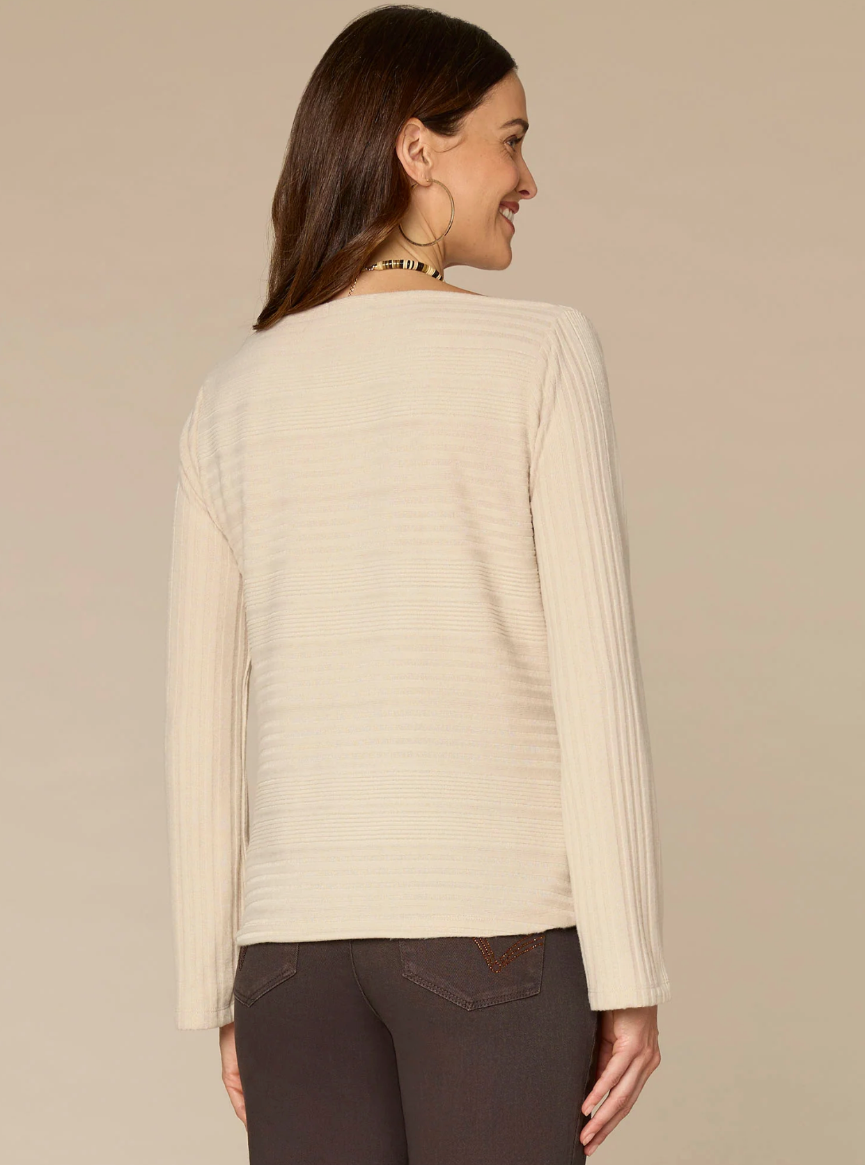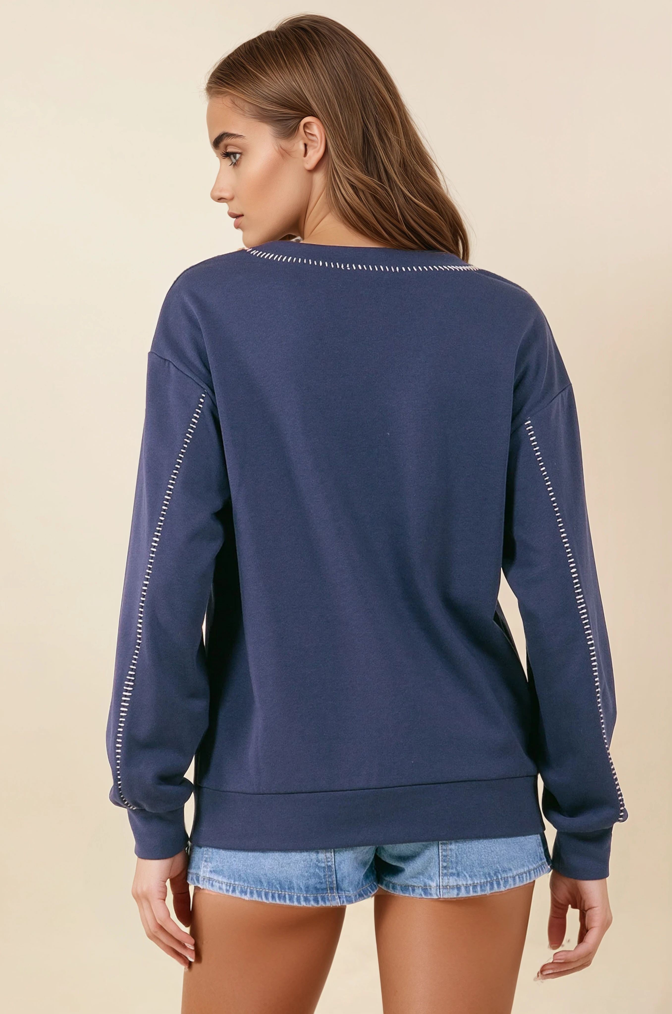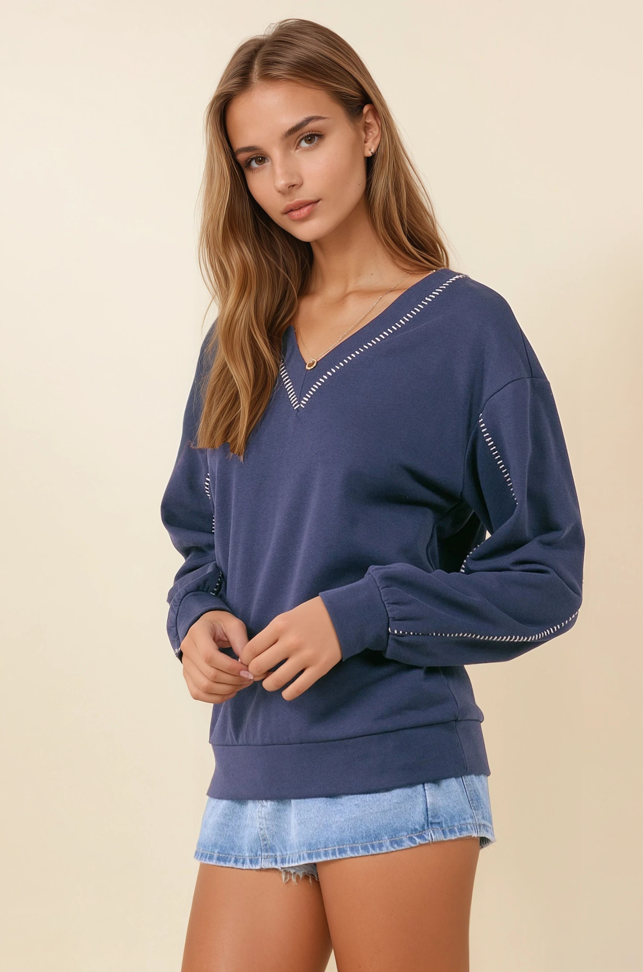 Split Neck Rawedge Seam Long Sleeve