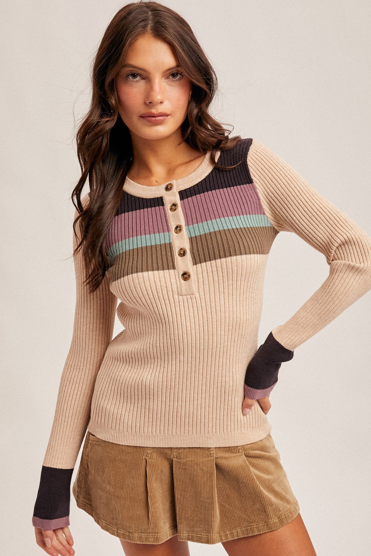 Ribbed Henley Sweater Top