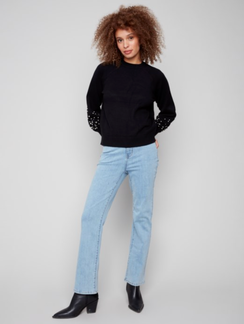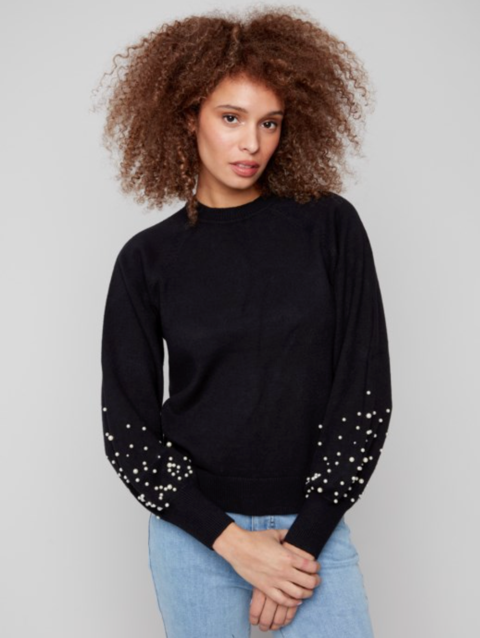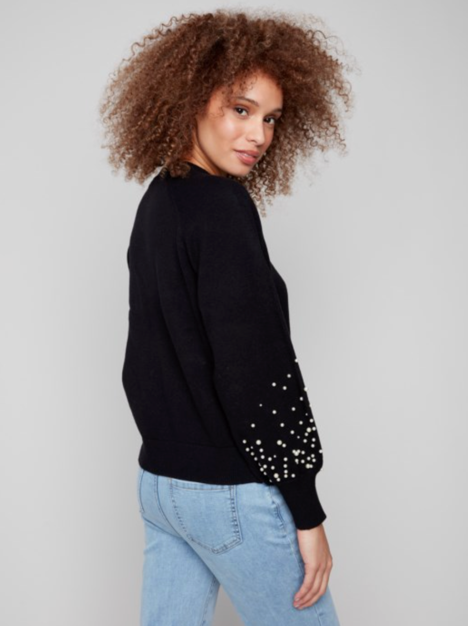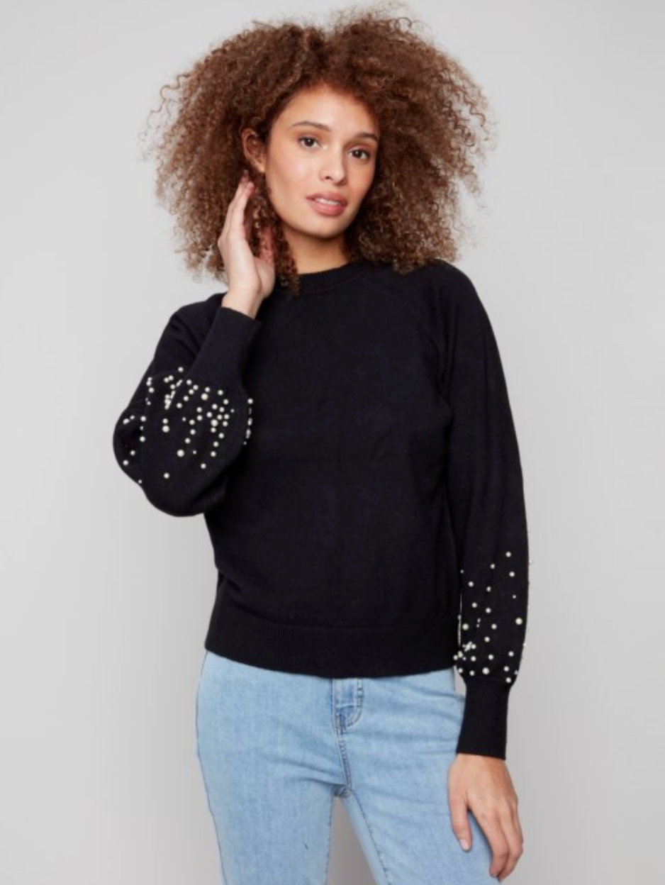 Elevate your style with this Crew Neck Sweater featuring charming pearl details on puffed raglan sleeves. Crafted from a soft blend of rayon, polyester, and nylon, it offers lightweight warmth and a comfy fit with a playful twist that catches the eye. Perfect for adding a touch of fun elegance to your casual looks!