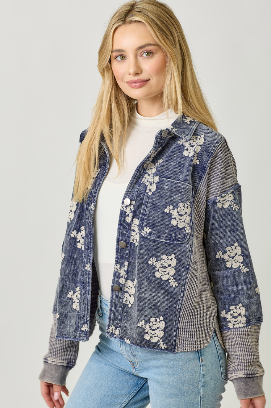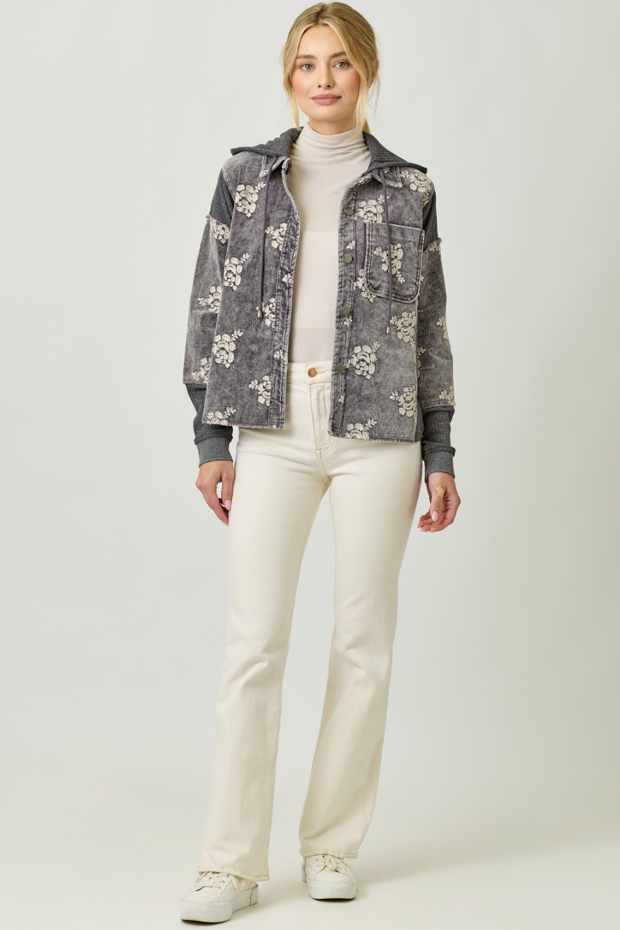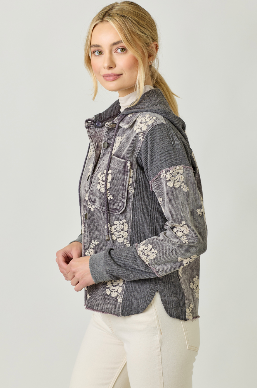 This Flower Embroidery Hoodie Jacket brings a fun twist to your casual wardrobe. Featuring a removable hood for versatile styling, a button-down front for easy wear. The playful hi-lo hem adds a flirty flair, making it perfect for layering on any day you want to bloom with style.