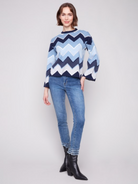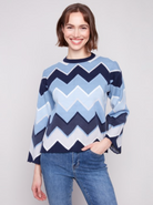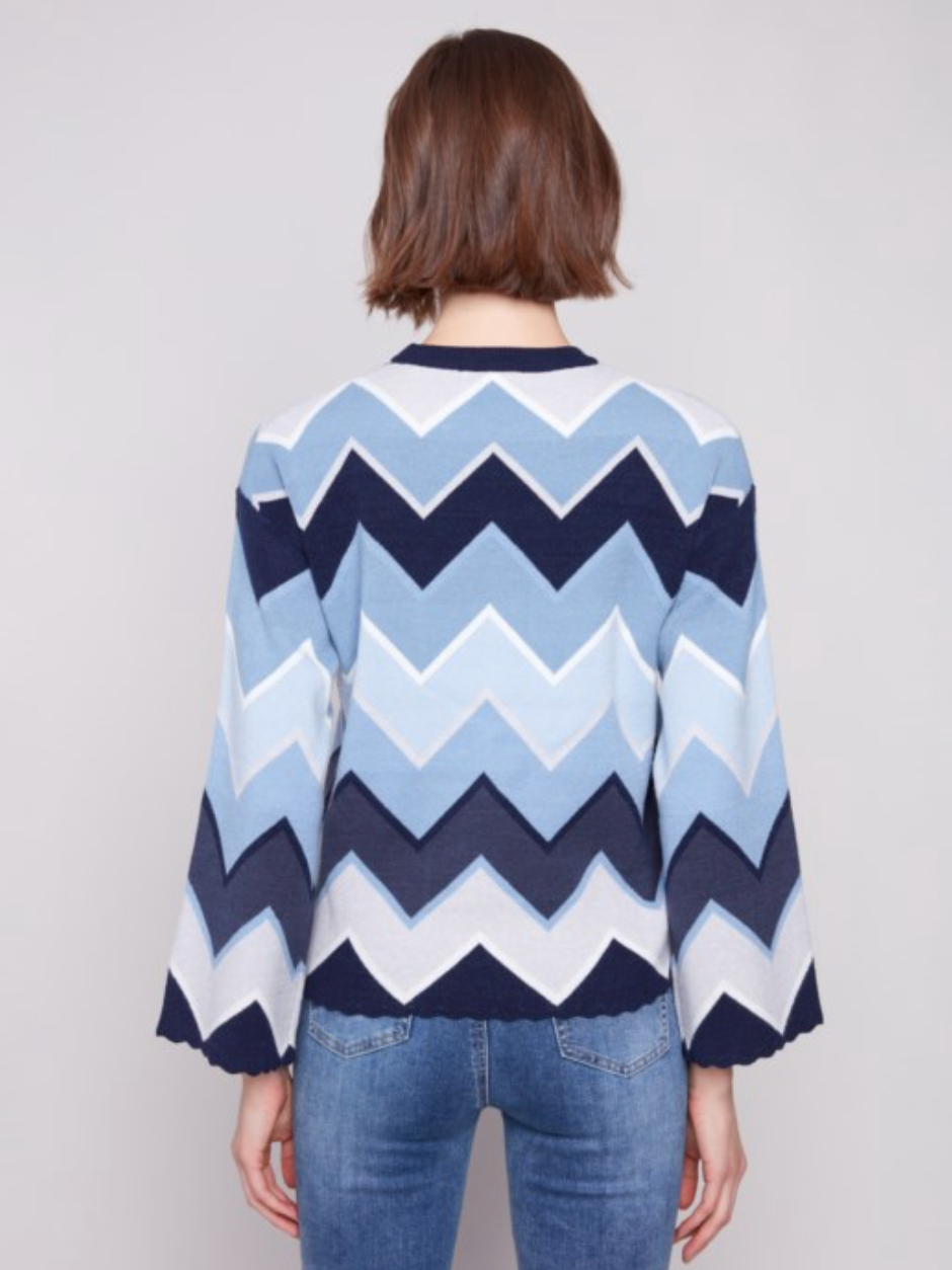 Add a dash of fun to your wardrobe with this Jacquard Chevron Bell Sleeve Sweater. The bold chevron pattern and flirty bell sleeves bring playful charm to any casual look, making it perfect for days when you want to feel comfy and stylish at the same time.
