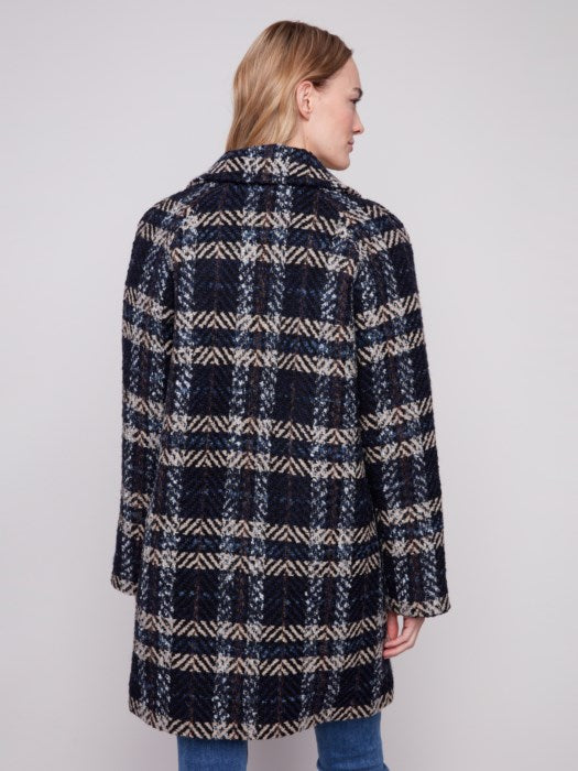 This plaid boucle coat combines sophisticated texture with timeless patterning, offering warmth and structure for cooler seasons. The boucle fabric provides a soft, tactile appeal while the classic plaid design adds refined visual interest. Ideal for layering over professional or casual outfits, this coat delivers both style and comfort with expert craftsmanship.