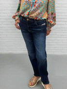 Experience the perfect blend of style and support with the Rachael High Rise Fab Ab jeans. Designed to enhance your silhouette, these jeans offer a high-rise fit that provides tummy control and a flattering shape. Crafted with premium, stretchy fabric, they ensure comfort and flexibility for all-day wear, whether you're working out or running errands.