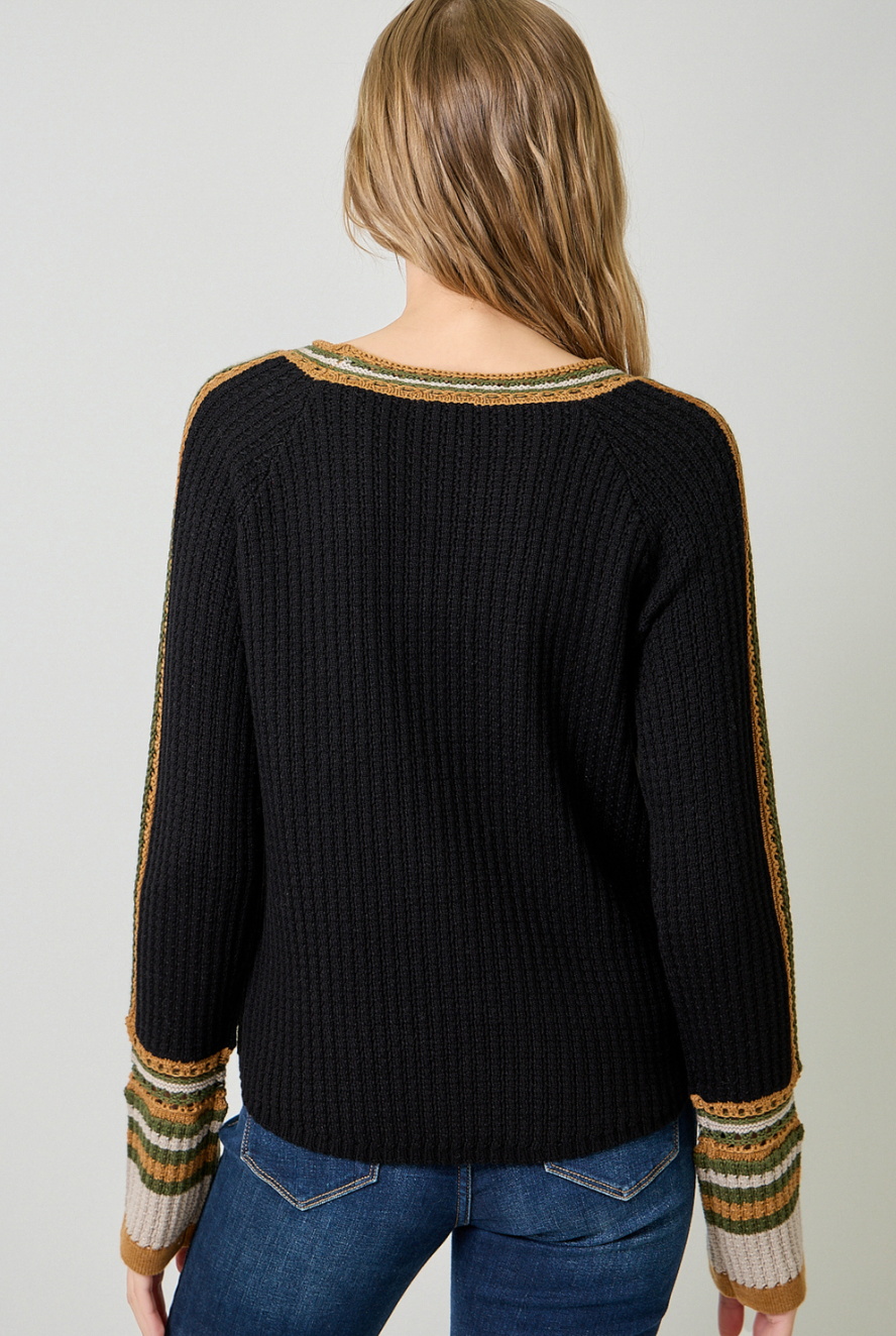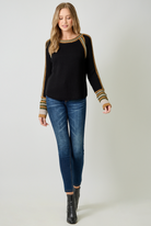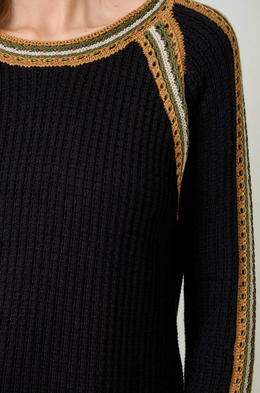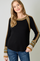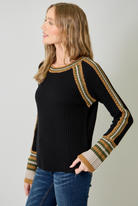 This Raglan Sleeve Trim Detail Sweater brings a fun twist to your cozy wardrobe. Featuring a classic round neck and playful hi-lo hem, it adds a flirty flair to your look. The long sleeves with contrast stripes give it a sporty edge, perfect for mixing comfort with style on any casual day.