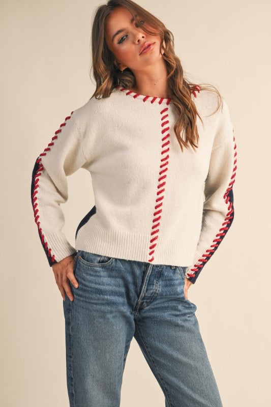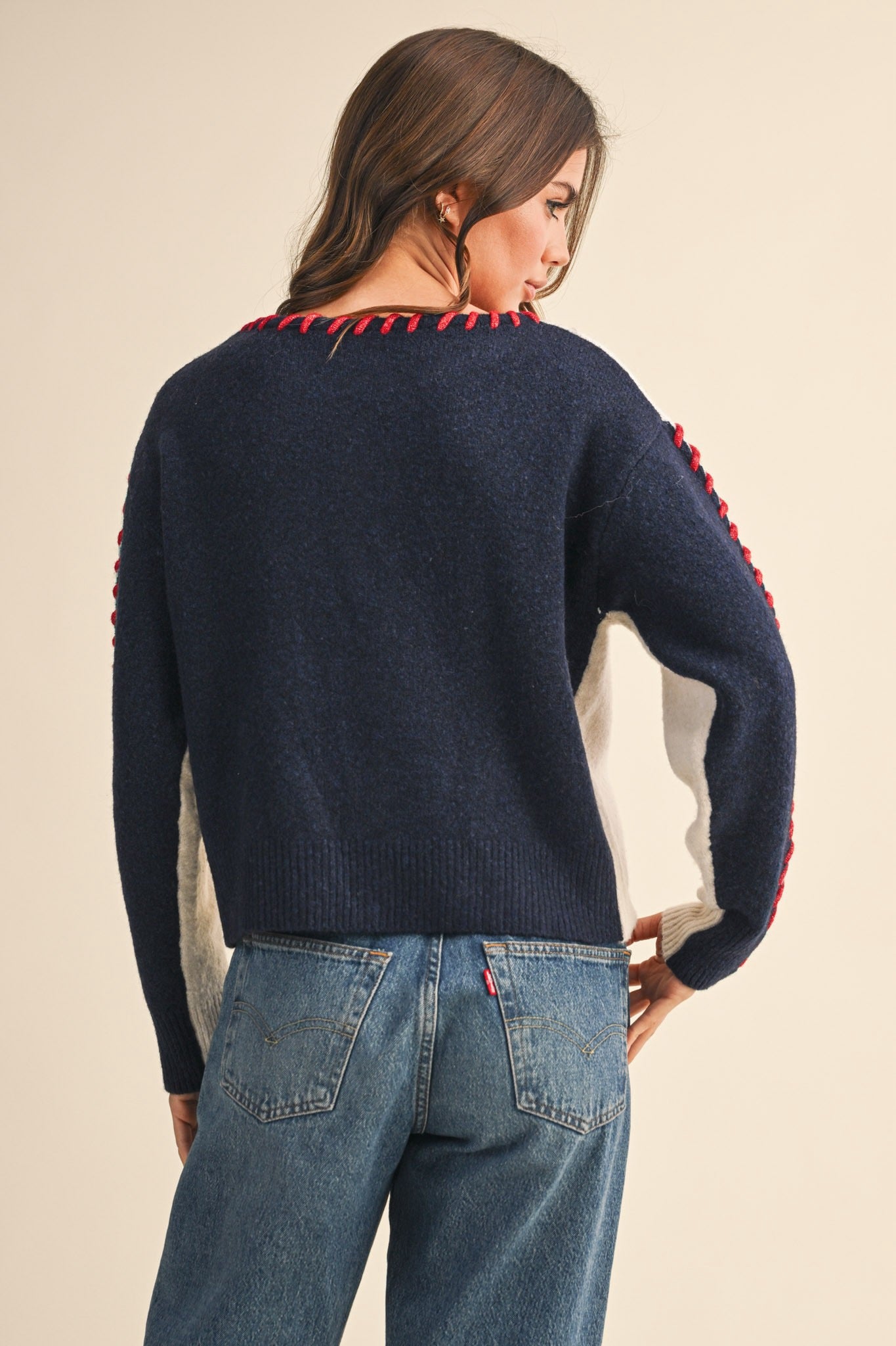 Cozy up in style with our Whip Stitch Two Tone Sweater! Featuring a fun contrast of colors and charming whip stitch details, this sweater adds a playful twist to your everyday look. Perfect for layering or wearing solo, it’s your new go-to for comfort with a splash of personality.