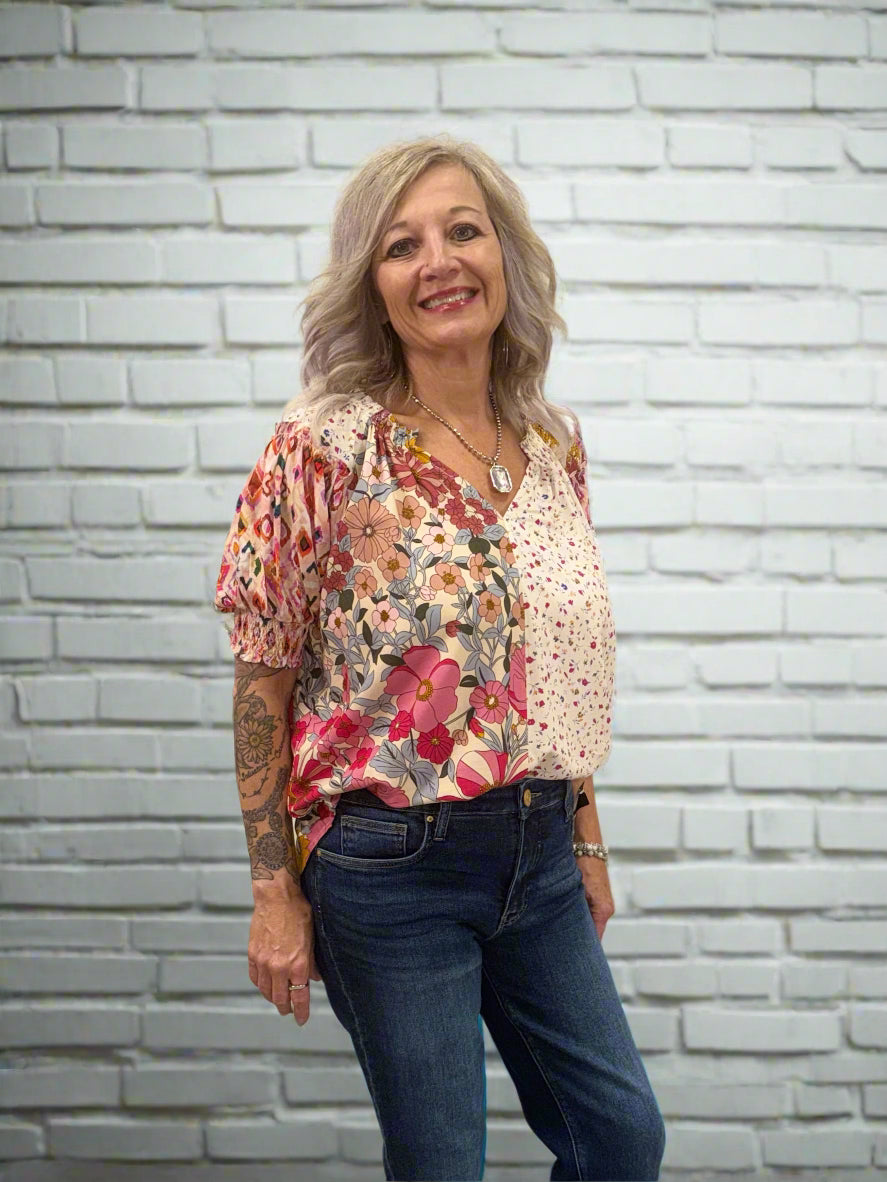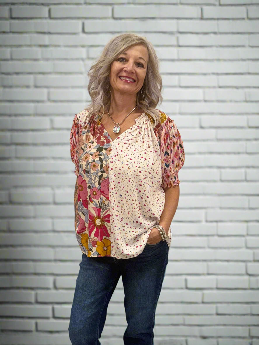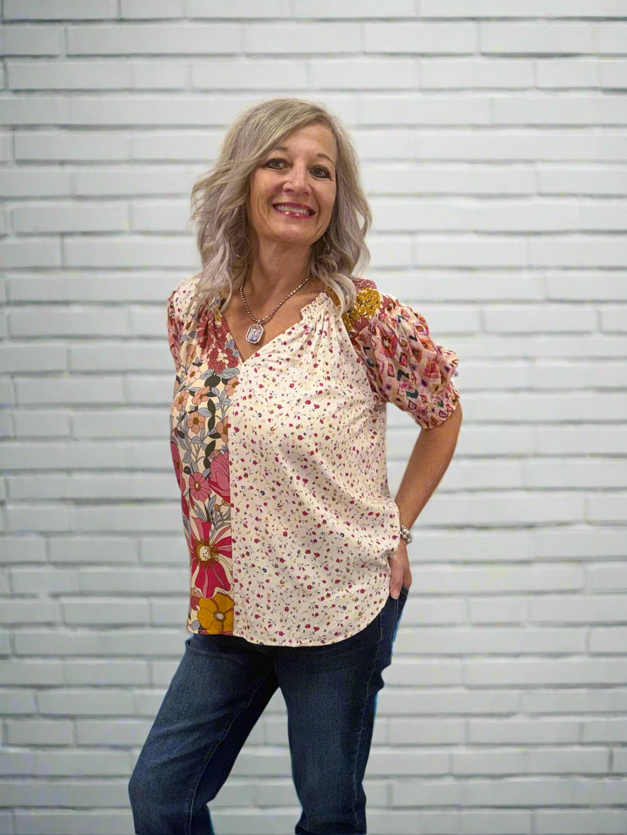 This woven print mix and match peasant top combines artisanal patterns with a relaxed silhouette, offering versatile styling options. Crafted from breathable fabric, it ensures comfort while the peasant-inspired design adds a timeless, bohemian touch. Ideal for layering or wearing alone, this top adapts seamlessly to various looks, making it a sophisticated addition to any wardrobe.